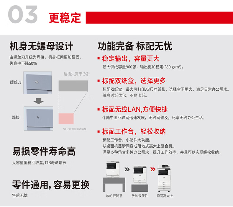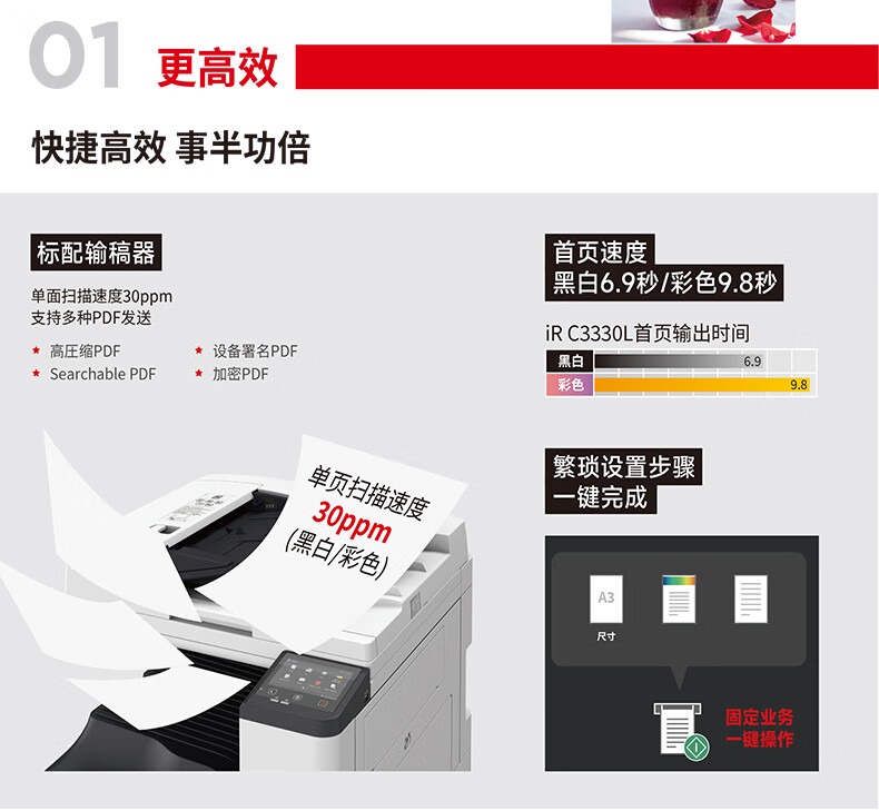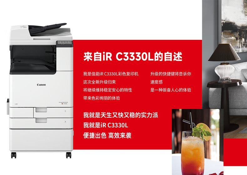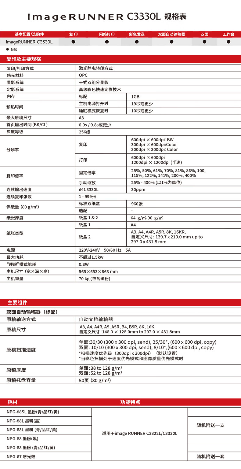 • 商品名稱:佳能(Canon)大型打印機iRC3330L 商用辦公a3a4彩色復(fù)合機雙面復(fù)印掃描自動輸稿器/WiFi/工作臺(3130L升級版