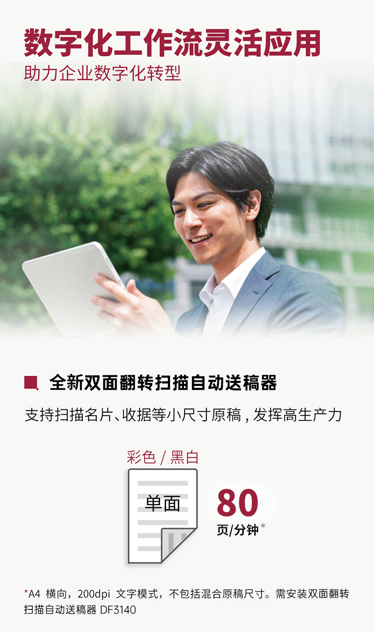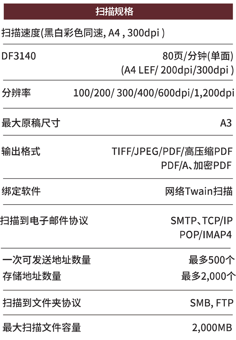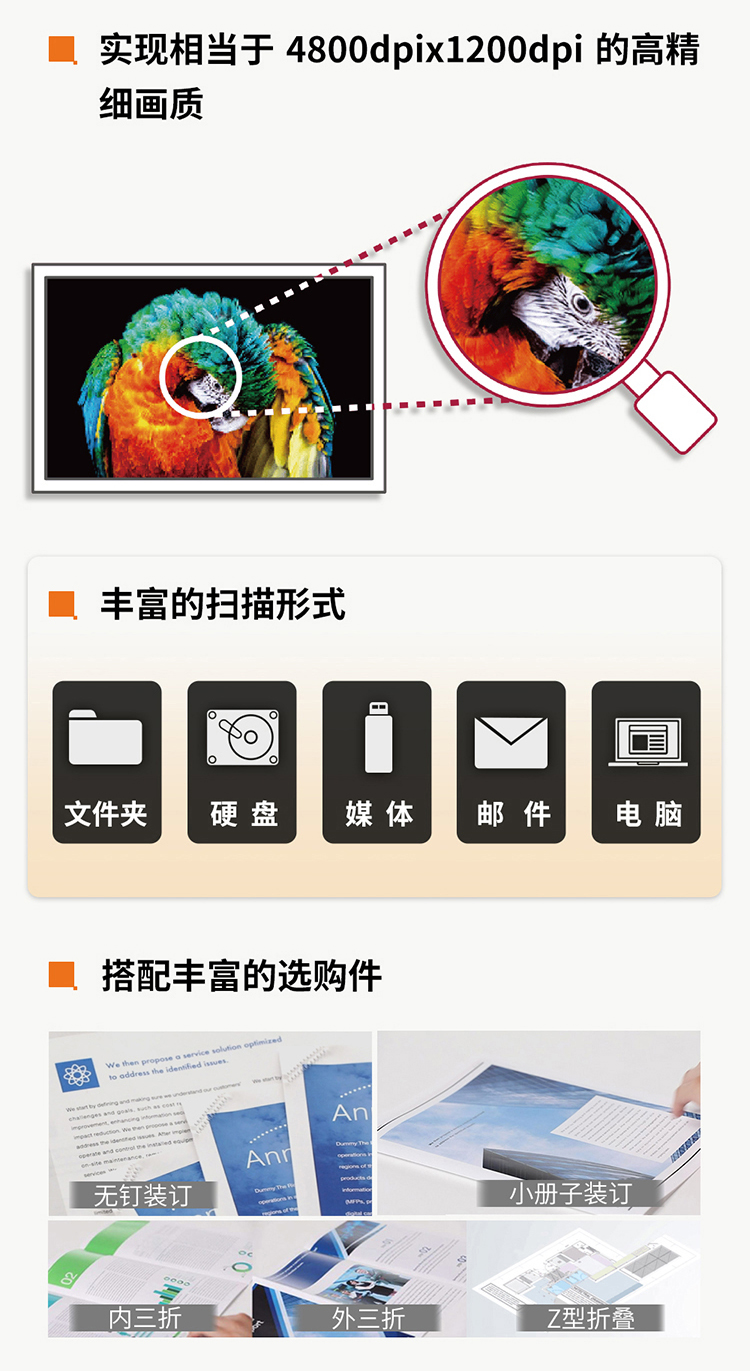 • 規(guī)格:主機+送稿器+標(biāo)配雙紙盒+內(nèi)置裝訂器