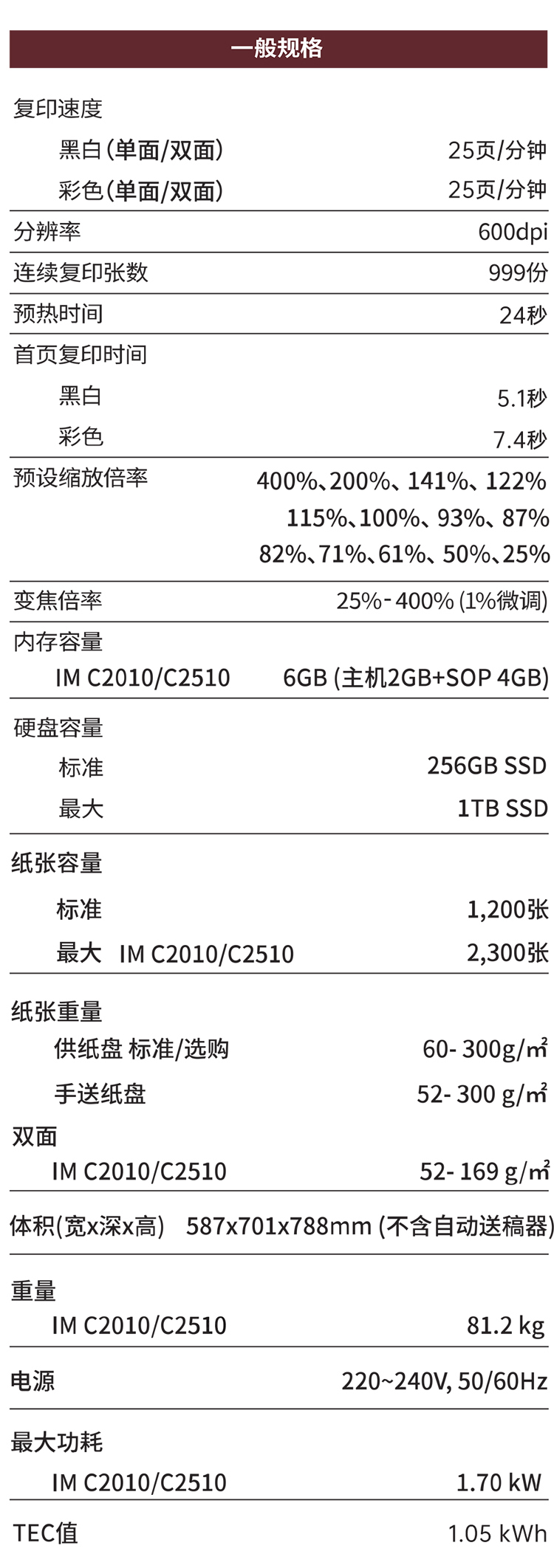 • 型號:IM C2510