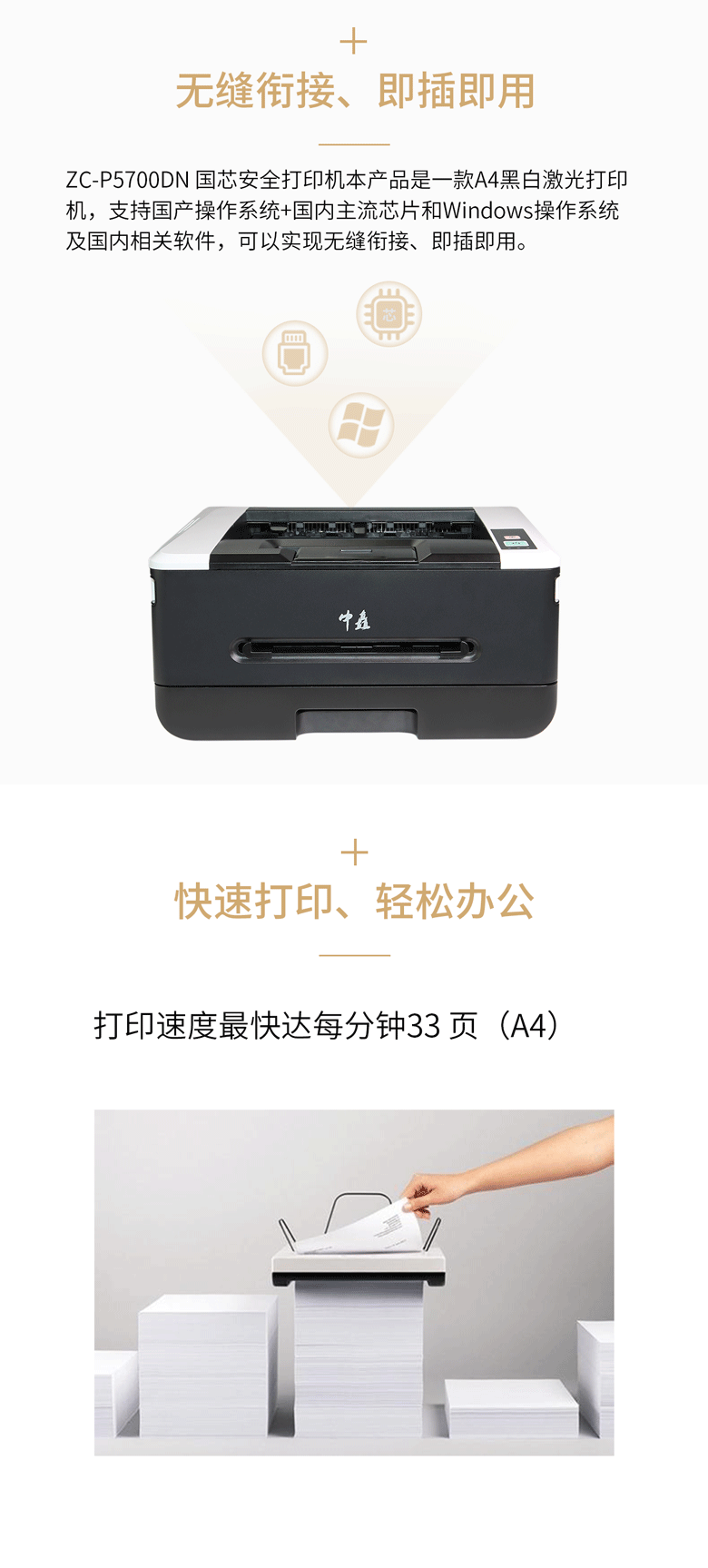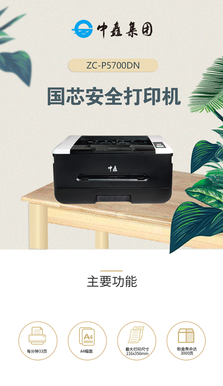 中矗 A4黑白激光打印機(jī) ZC-P5700DN 雙面打印/每分鐘33頁(yè)