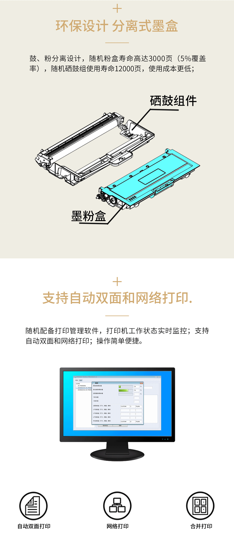 • 商品名稱(chēng):中矗 A4黑白激光打印機(jī) ZC-P5700DN 雙面打印/每分鐘33頁(yè)