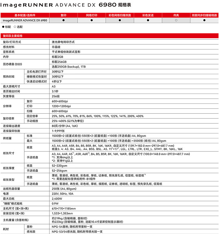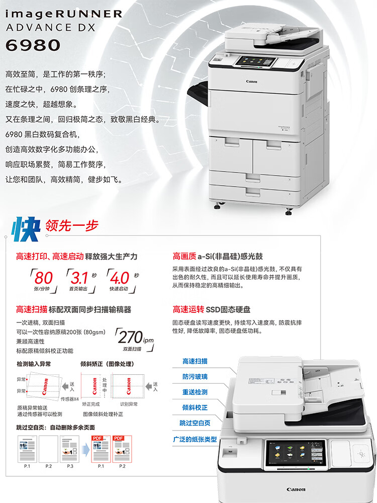 • 商品名稱:佳能(Canon)imageRUNNER ADVANCE DX 6980 A3大型黑白激光數(shù)碼復合機(含鞍式裝訂、上門安裝)