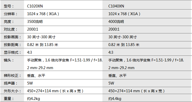 • 標(biāo)準(zhǔn)顯示分辨率:EB-C1020XN