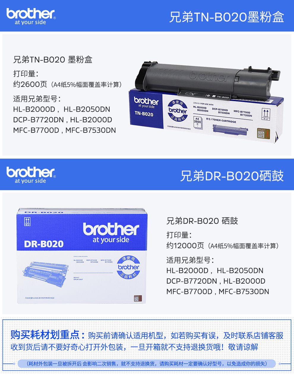 - 商品名稱:兄弟(brother)DR-B020硒鼓 適用于B2000D/B2050DN/B7500D/B7530DN/B7700D/B7720DN