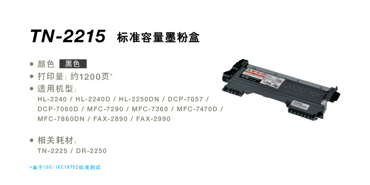 • 商品名稱:兄弟(brother)TN-2215粉盒 適用于兄弟2240/7057/7060D/2990/ 2890/ 7360/7470D/7860