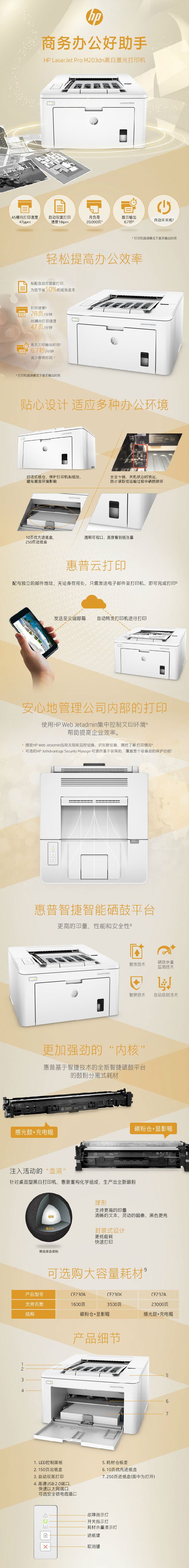 惠普(HP)A4黑白激光打印機(jī)LaserJet Pro M203dn 28ppm 自動(dòng)雙面打印 有線網(wǎng)絡(luò) 分辨率600*600dpi 適用耗材:CF230A/CF230X/CF232A 鼓粉分離 一年送修