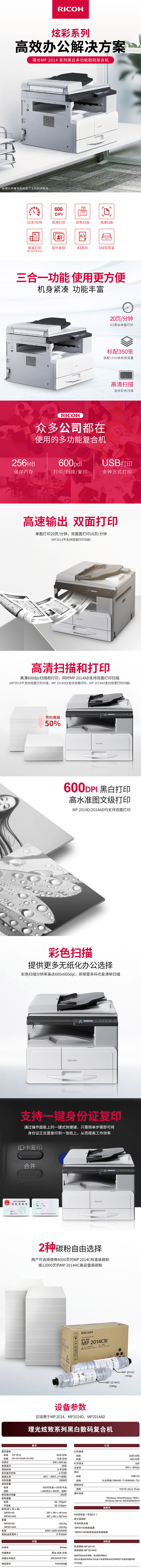 - 商品名稱:理光(Ricoh)MP 2014D A3黑白數(shù)碼復(fù)合機 標(biāo)配含蓋板