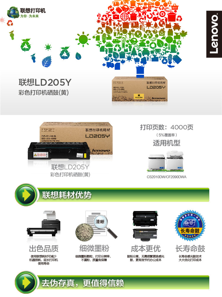 • 商品名稱:聯(lián)想(Lenovo)LD205Y黃色硒鼓 適用于CS2010DW/CF2090DWA打印機(jī) 4000頁