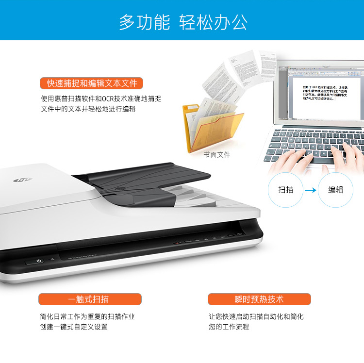 惠普(HP) ScanJet Pro 2500 f1 自動(dòng)雙面高速掃描儀 A4掃描儀