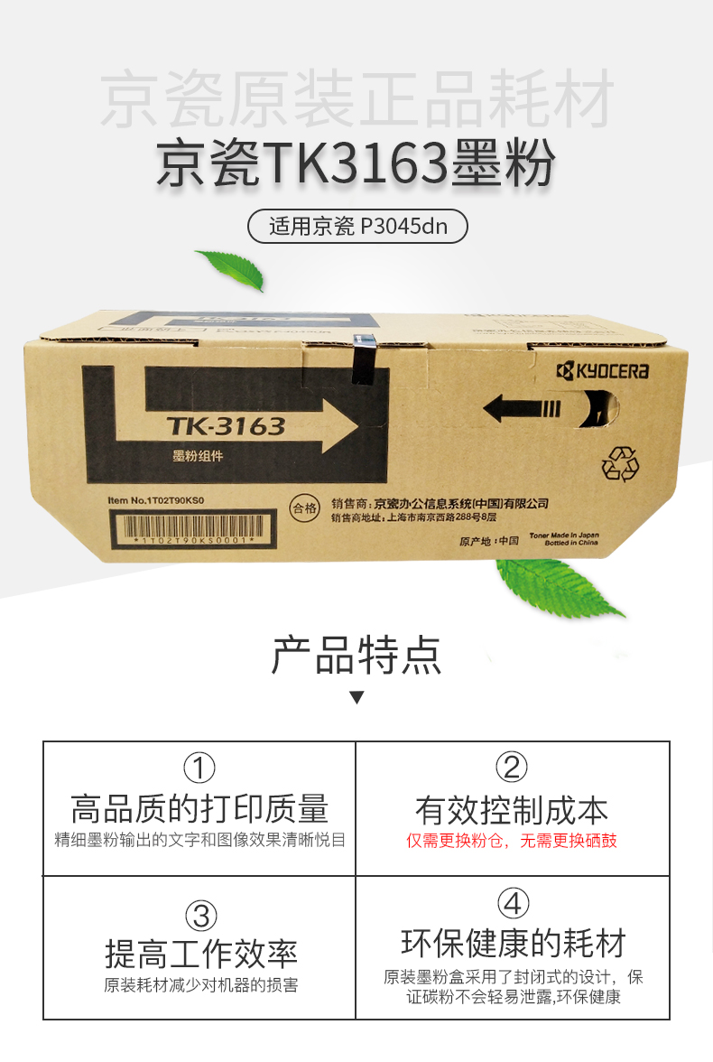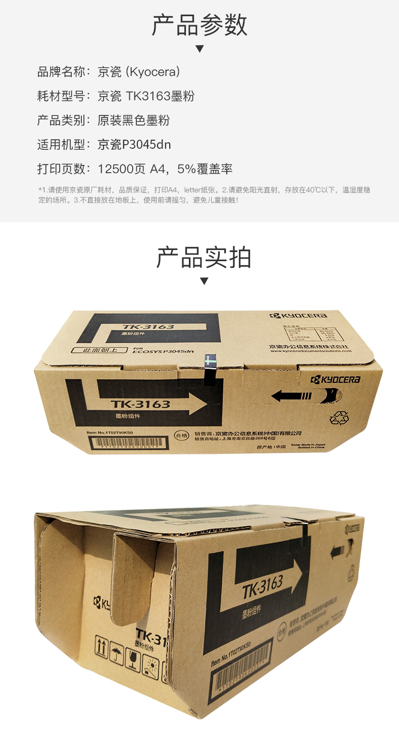 • 商品名稱:京瓷(KYOCERA)TK-3163墨粉盒 適用P3045dn機(jī)型