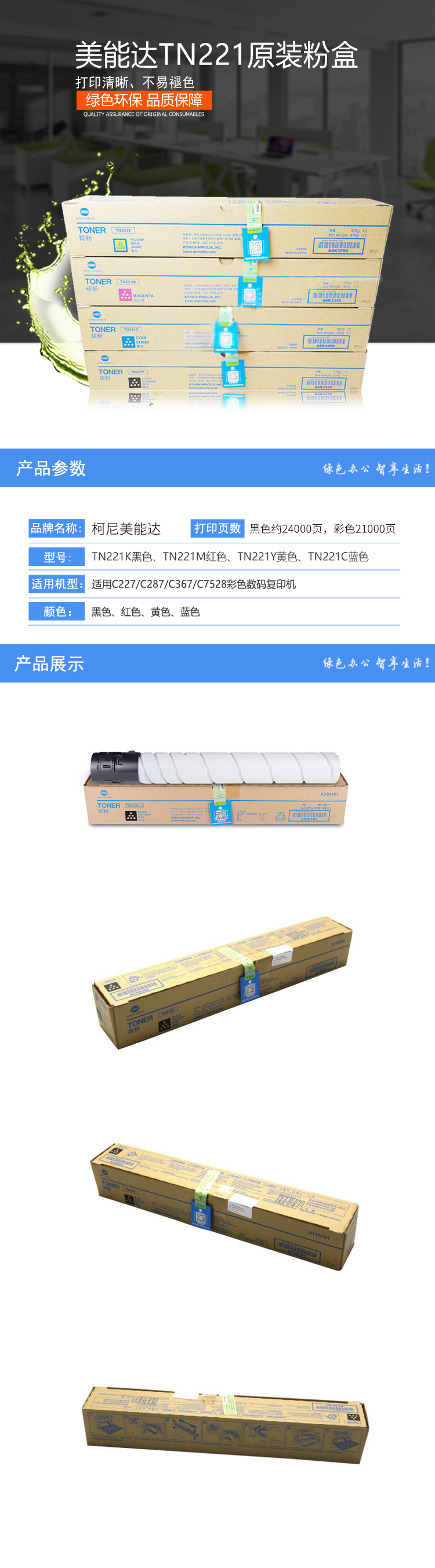 - 商品名稱(chēng):柯尼卡美能達(dá)(KONICA MINOLTA)TN221Y碳粉盒適用于C227/C287/C367/C7528