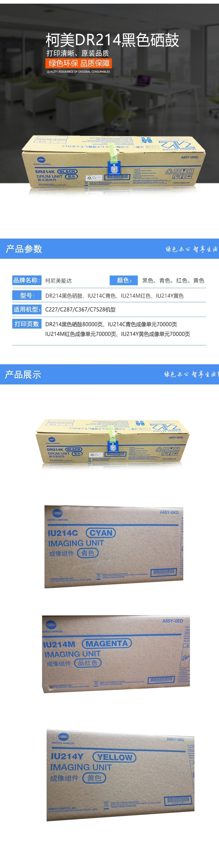 • 商品名稱:柯尼卡美能達(KONICA MINOLTA)DR214K黑色硒鼓適用于C227/C287/C367/C7528