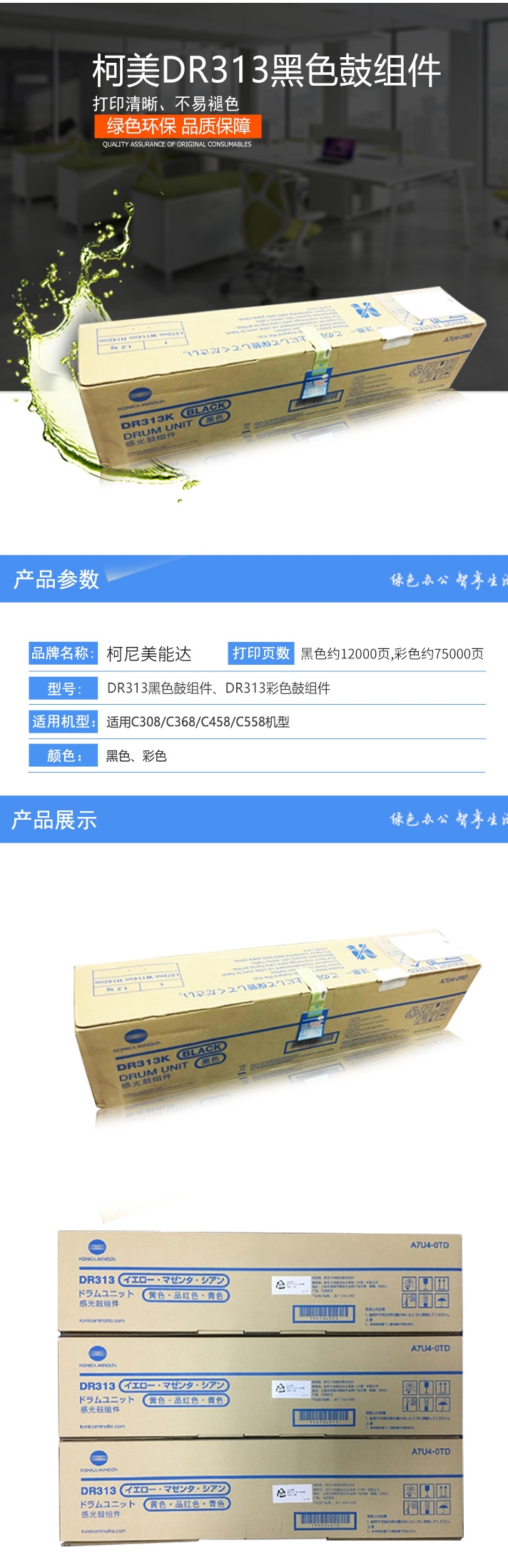 • 商品名稱:柯尼卡美能達(KONICA MINOLTA)DR313K黑色鼓組件適用于C308/C368