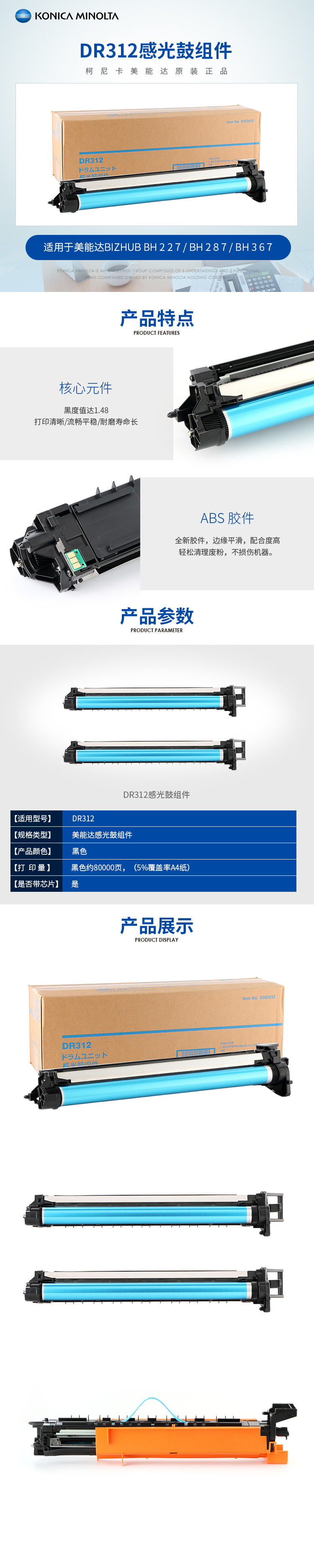 - 商品名稱:柯尼卡美能達(dá)(KONICA MINOLTA)DR312黑色感光鼓適用于BH227/287/367
