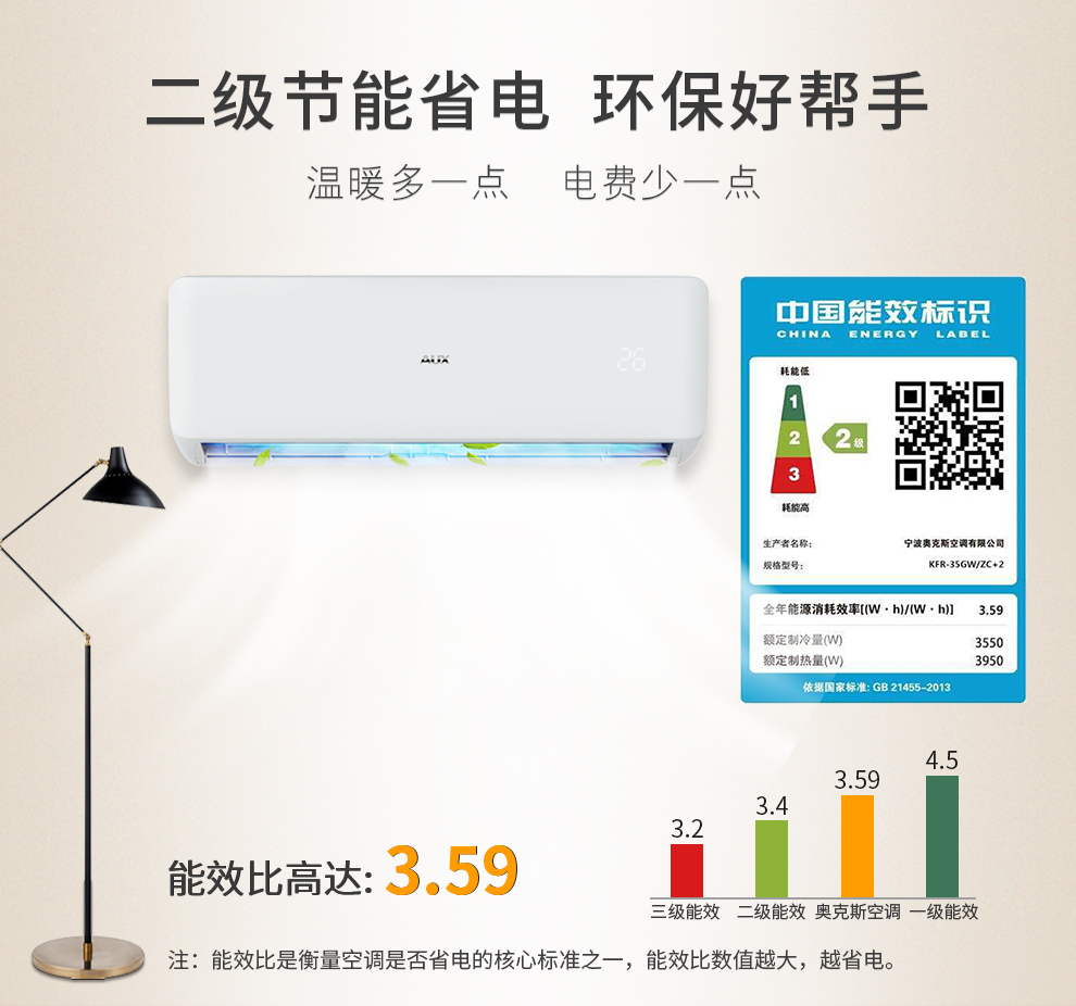 • 商品名稱:奧克斯(AUX)KF-35GW/ZC+2壁掛式空調(diào)