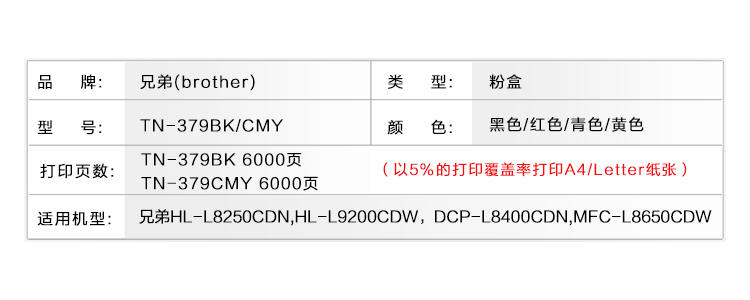 • 商品名稱:兄弟(brother)TN-379C粉盒 適用于兄弟8250CDN/9200CDW/8400CDN/8650CDW