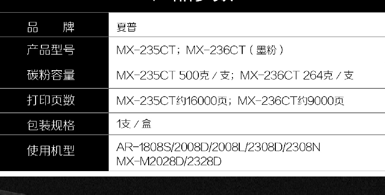 夏普(SHARP)MX-235CT 黑色墨粉 適用于AR1808/2008/2308/2328/2035/2028