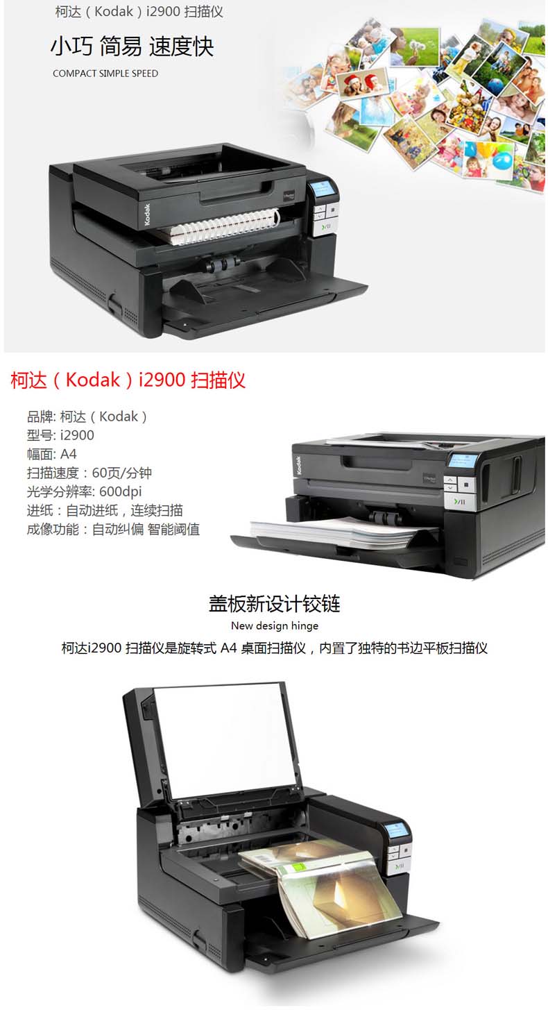 • 商品名稱:柯達(dá)(Kodak) i2900 高速掃描儀 A4幅面雙面自動(dòng)饋紙