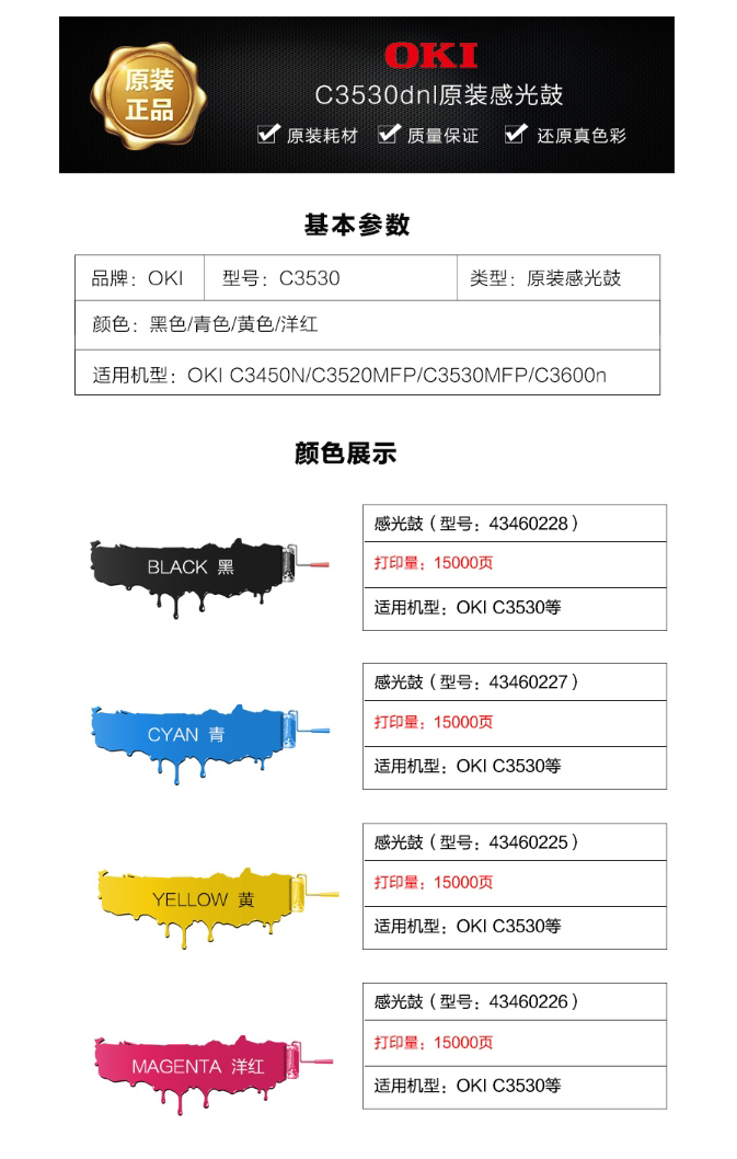 • 商品名稱(chēng):OKI洋紅色感光鼓43460226 適用于C3530MFP