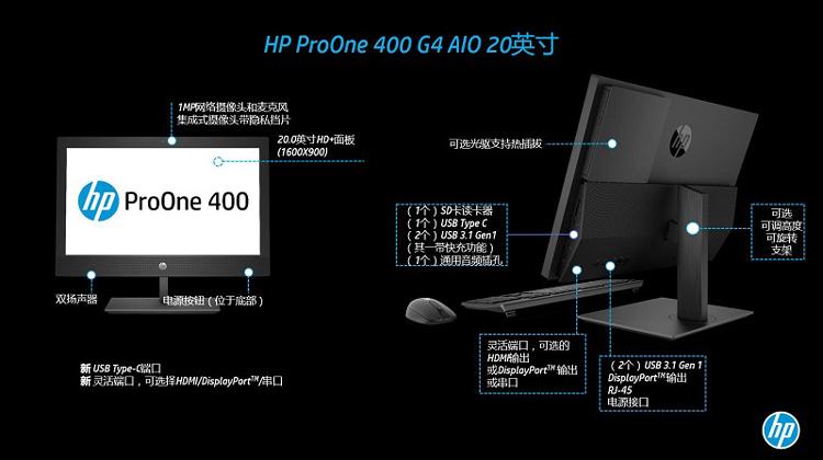 惠普 (HP) ProOne 400 G4 20寸一體機(jī)臺(tái)式電腦 I3-8100 4G 500G 集顯 DVDRW DOS 三年保修