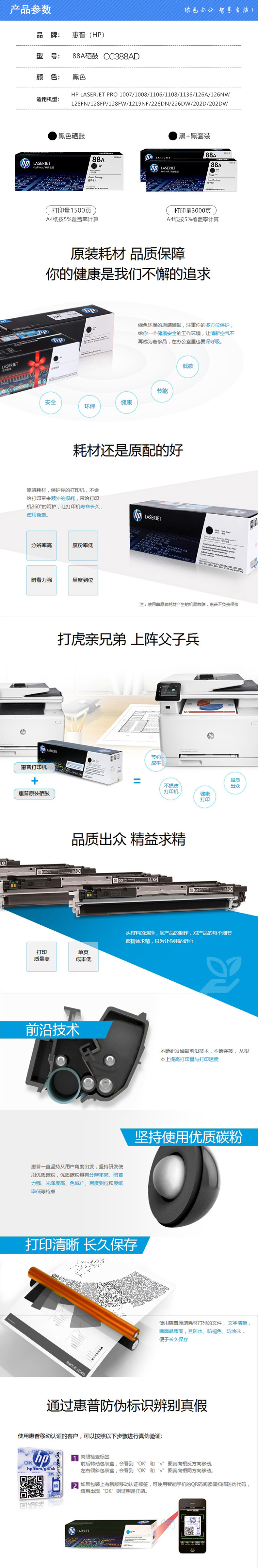 商品名稱:惠普(HP)88A 黑色硒鼓(雙包裝)CC388AD 打印量1,500頁 ×2 適用于HP LaserJet P1007/ P1008 HP LaserJet P1106/ P1108 HP LaserJet Pro M1219nf HP LaserJet Pro M1136/ M1139 HP LaserJet Pro M1213nf/M1216nfh MFP Hotspot HP Las
