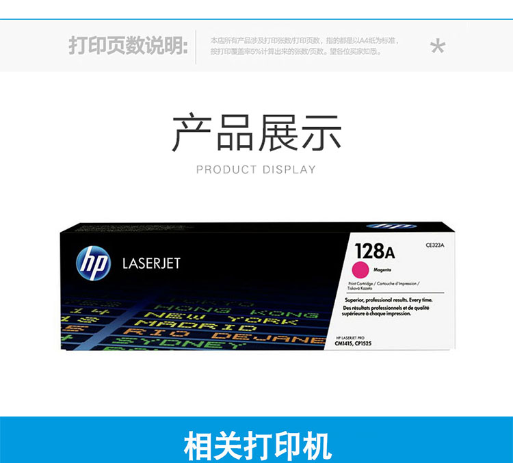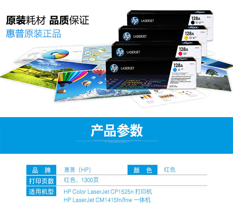 • 商品名稱:惠普(HP)128A 品紅色硒鼓CE323A 打印量1300頁 適用于HP Color LaserJet CP1525n HP LaserJet Pro CM1415 系列