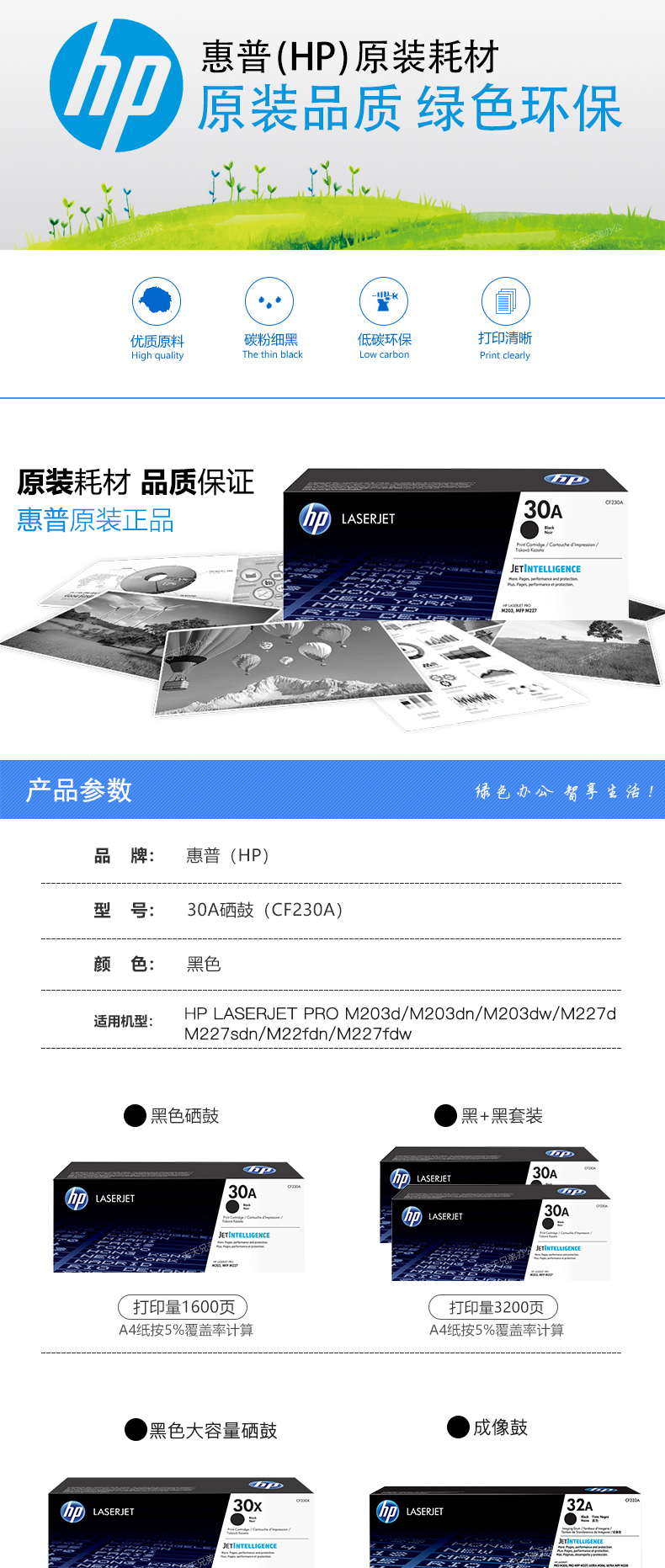 惠普(HP) CF230A 30A黑色硒鼓 適用于HP M203系列