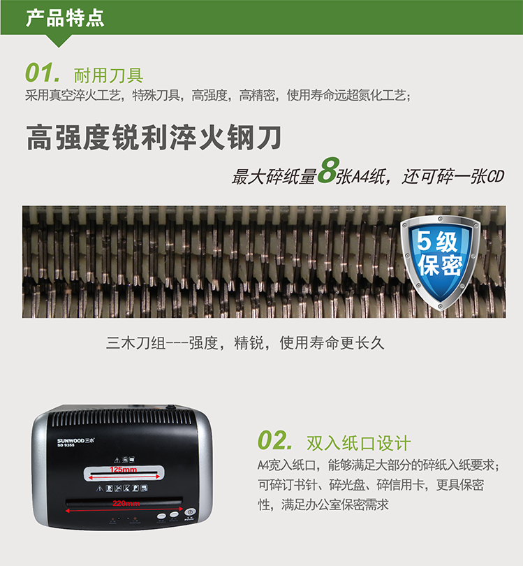 三木(SUNWOOD)錳鋼刀碎紙機(jī)SD9520