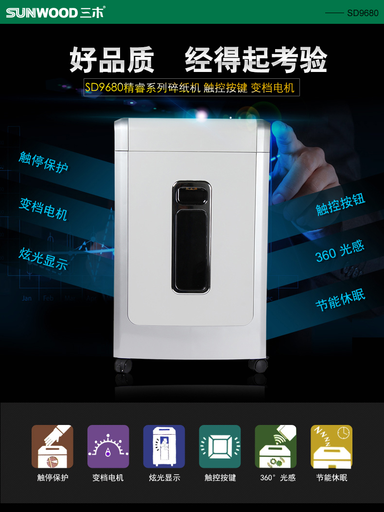 三木(SUNWOOD)錳鋼刀碎紙機SD9680