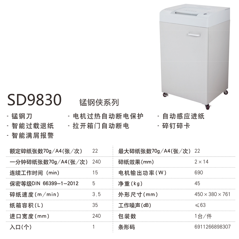 • 商品名稱:三木(SUNWOOD)大型碎紙機(jī)SD9830
