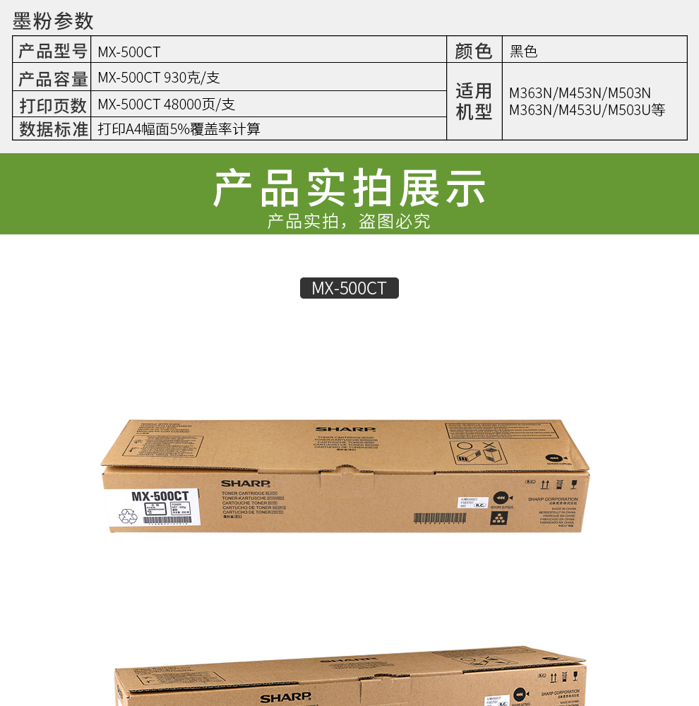 • 商品名稱:夏普(SHARP)MX-500CT碳粉 適用于M363N/M453N/M503N/M363U/M453U/M403U