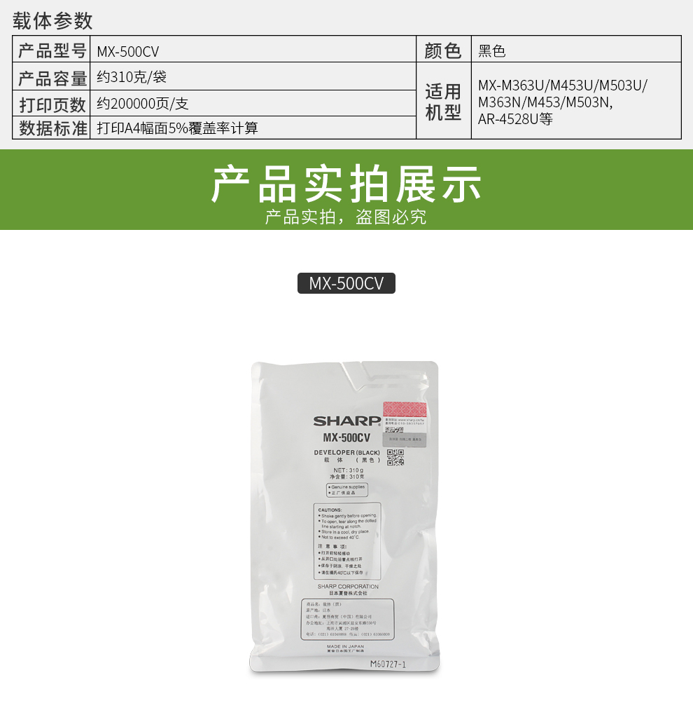 • 商品名稱:夏普(SHARP)MX-500CV黑色載體 適用于MX-M363 M453 M503 M363