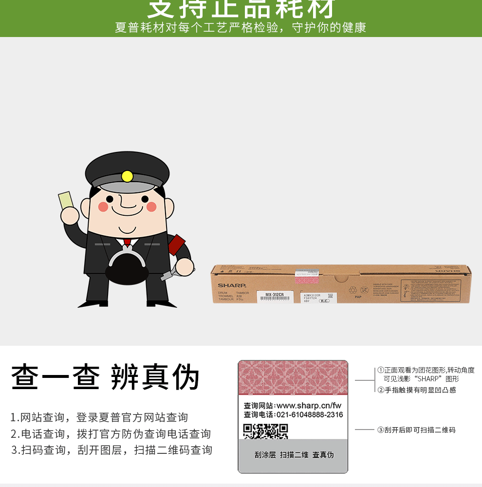 • 商品名稱:夏普(SHARP)MX-312CR鼓芯 適用于MX-M261/M261N/M311/M311N/2628L/M2608N/M3108N/M3508N/M2608U/M3108U/M3508U