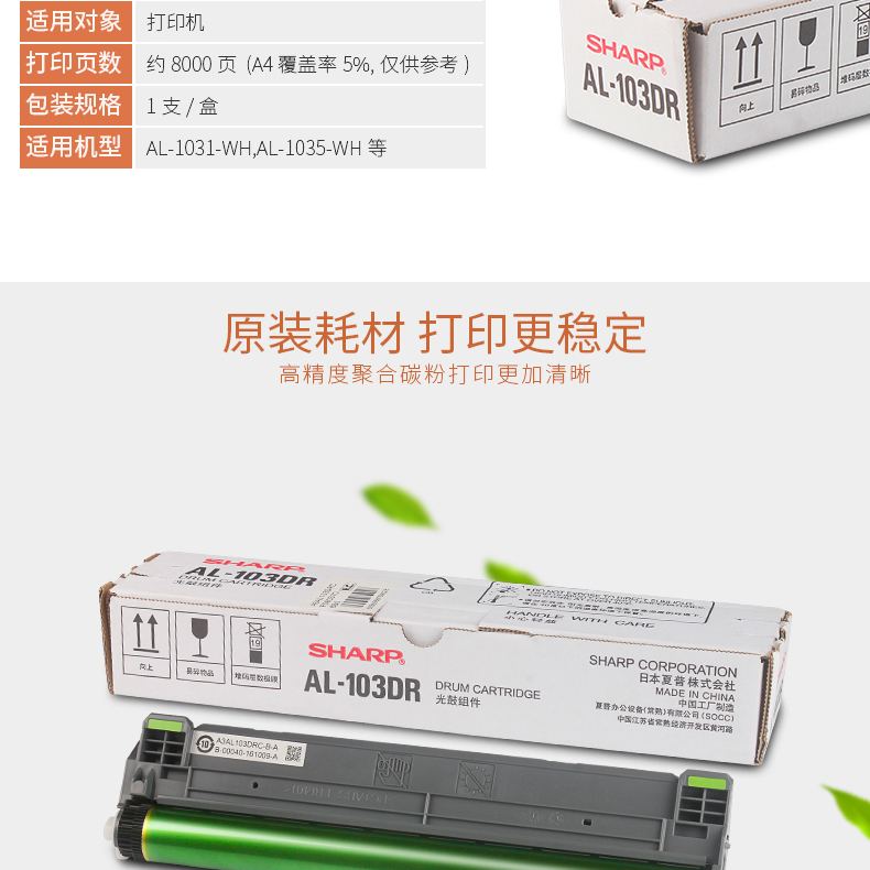 • 商品名稱:夏普(SHARP)AL-103DR套鼓 適用于AL-1031-WH,AL-1035-WH