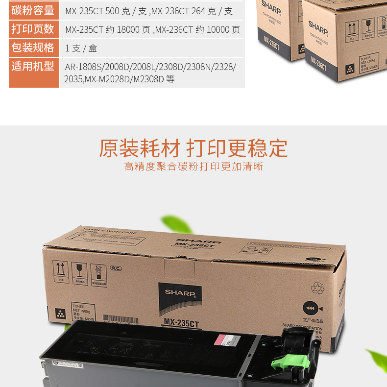 • 商品名稱:夏普(SHARP)MX-235CT碳粉 適用于AR-1808S/2008/2308/2035/2328/2035/MX-M2028/M2308