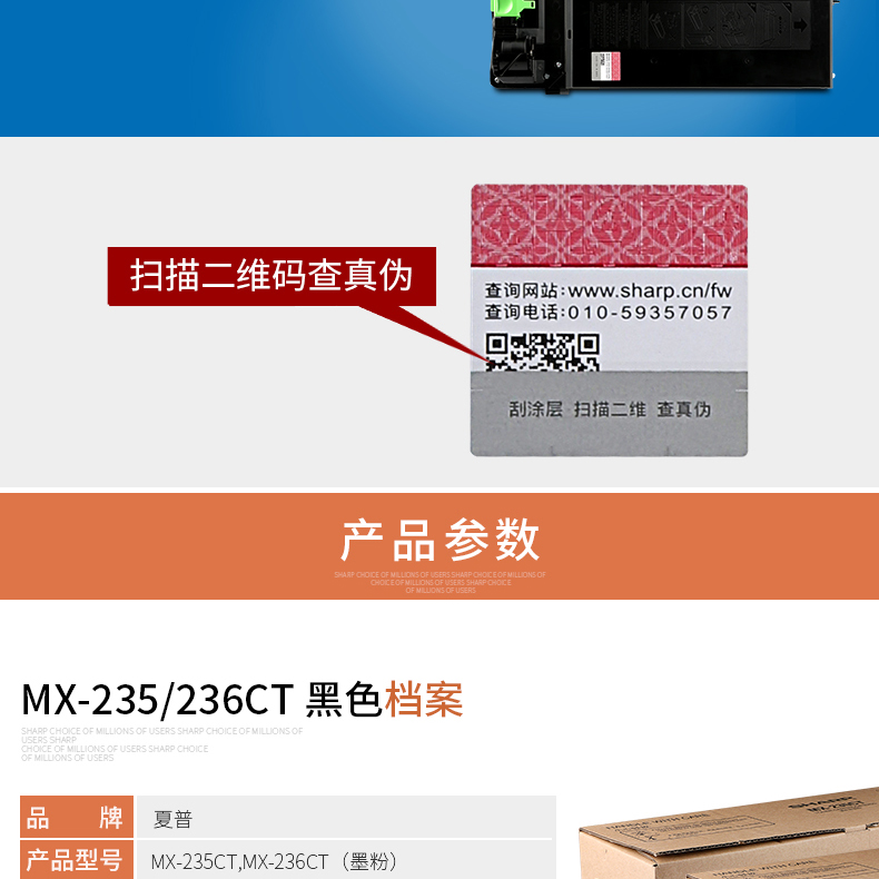 • 商品名稱:夏普(SHARP)MX-236CT碳粉 適用于AR-1808S/2008/2308/2035/2328/2035/MX-M2028/M2308