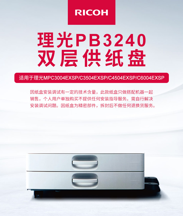 - 商品名稱:理光(Ricoh)雙層供紙盤PB3240(550張*2) 適用于理光MPC3004EXSP/C3504EXSP/C4504EXSP/C6004EXSP