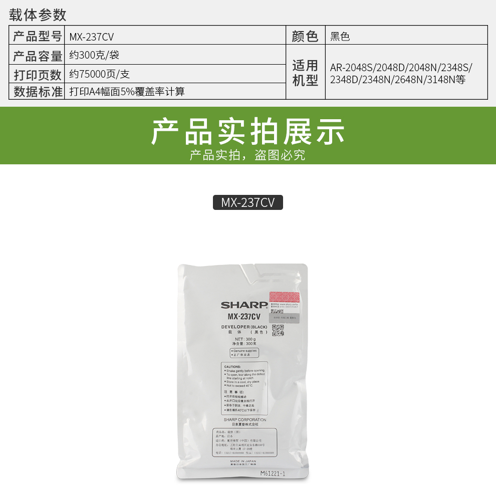 • 商品名稱:夏普(SHARP)MX-237CV載體 適用于AR-2048S/2048D/2048N/2348S/2348D/2348N/2648N/3148N