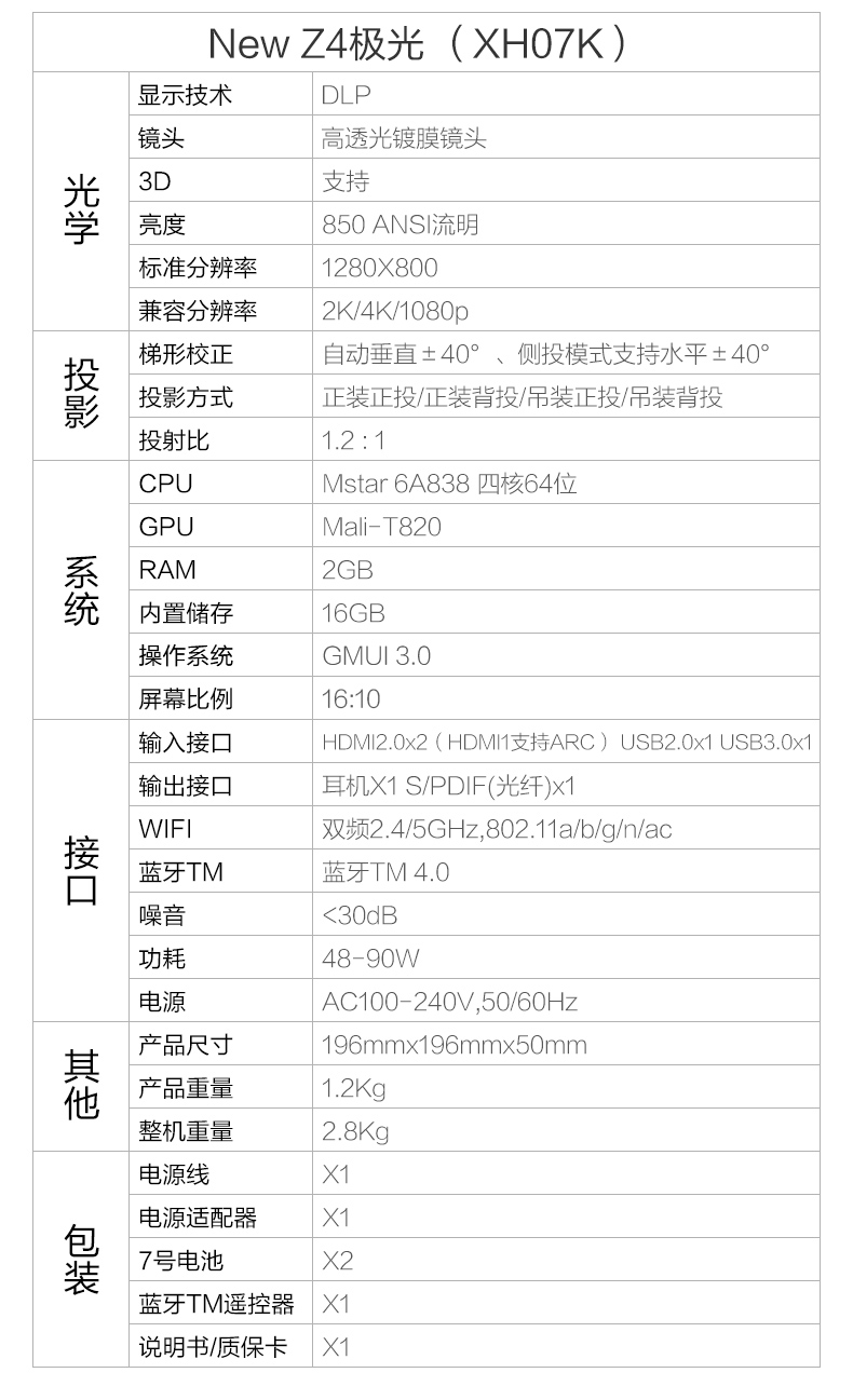 • 商品名稱:極米 (XGIMI )New Z4極光 投影儀