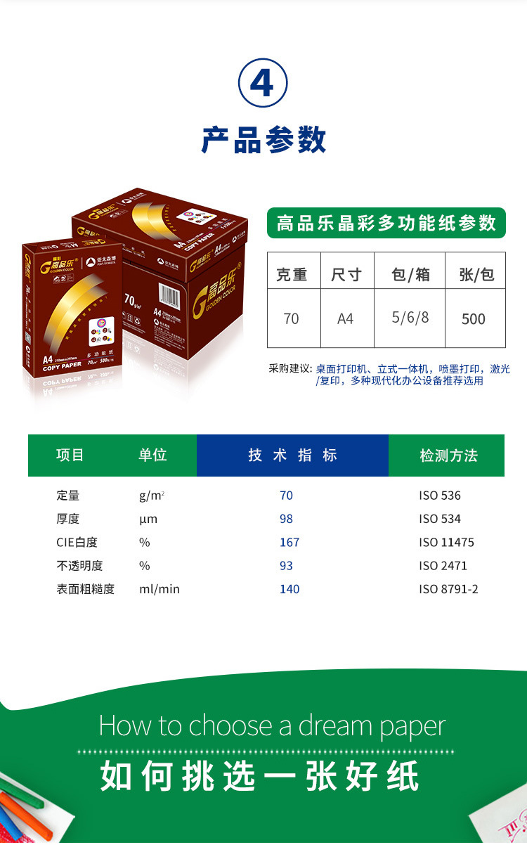 • 商品名稱:高品樂(GOLDEN COLOR)晶彩A4 80G復(fù)印紙(5R)咖啡色 500張/包 5小包/箱