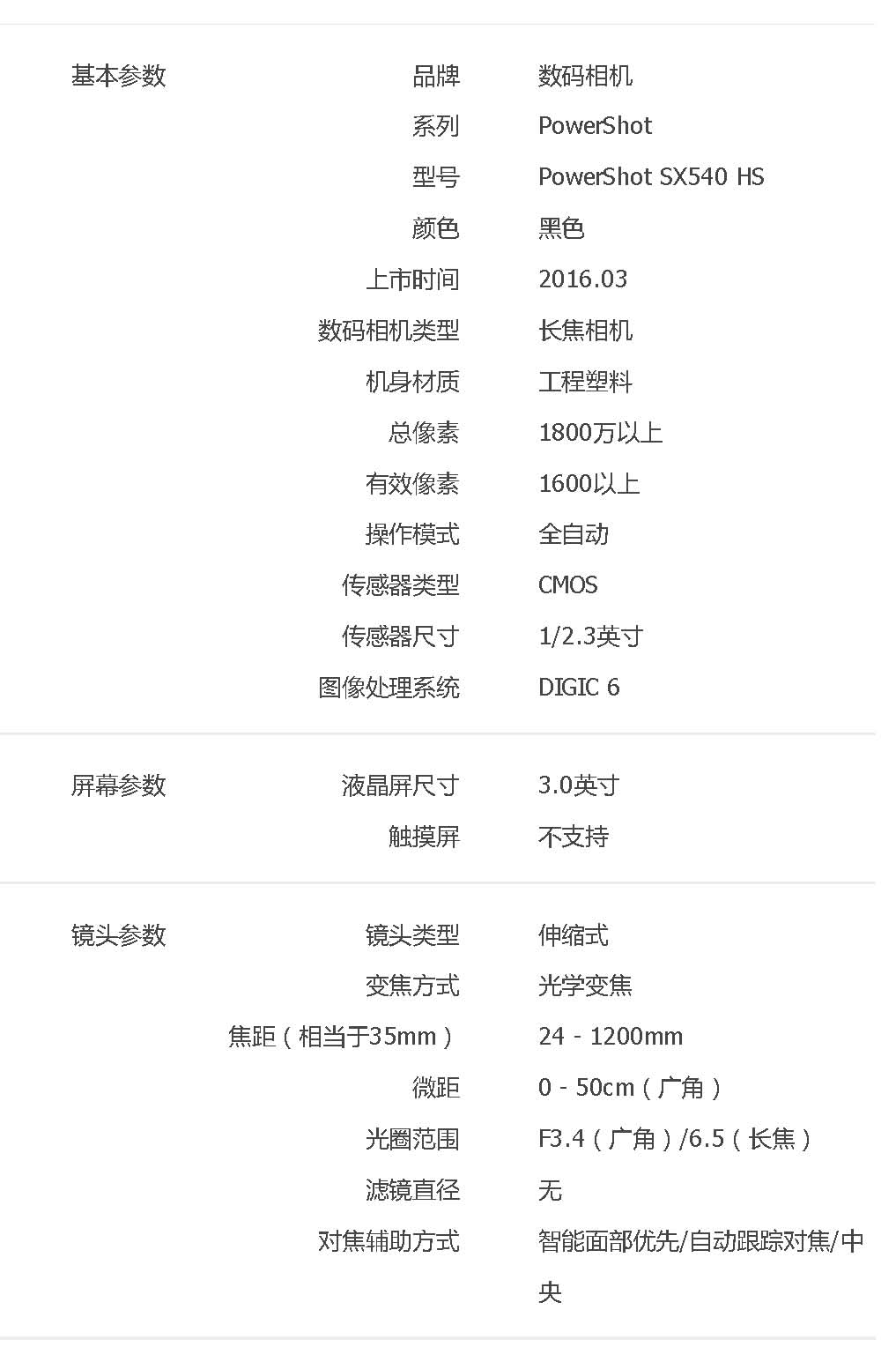 • 規(guī)格:PowerShot SX540 HS數(shù)碼相機(jī)
