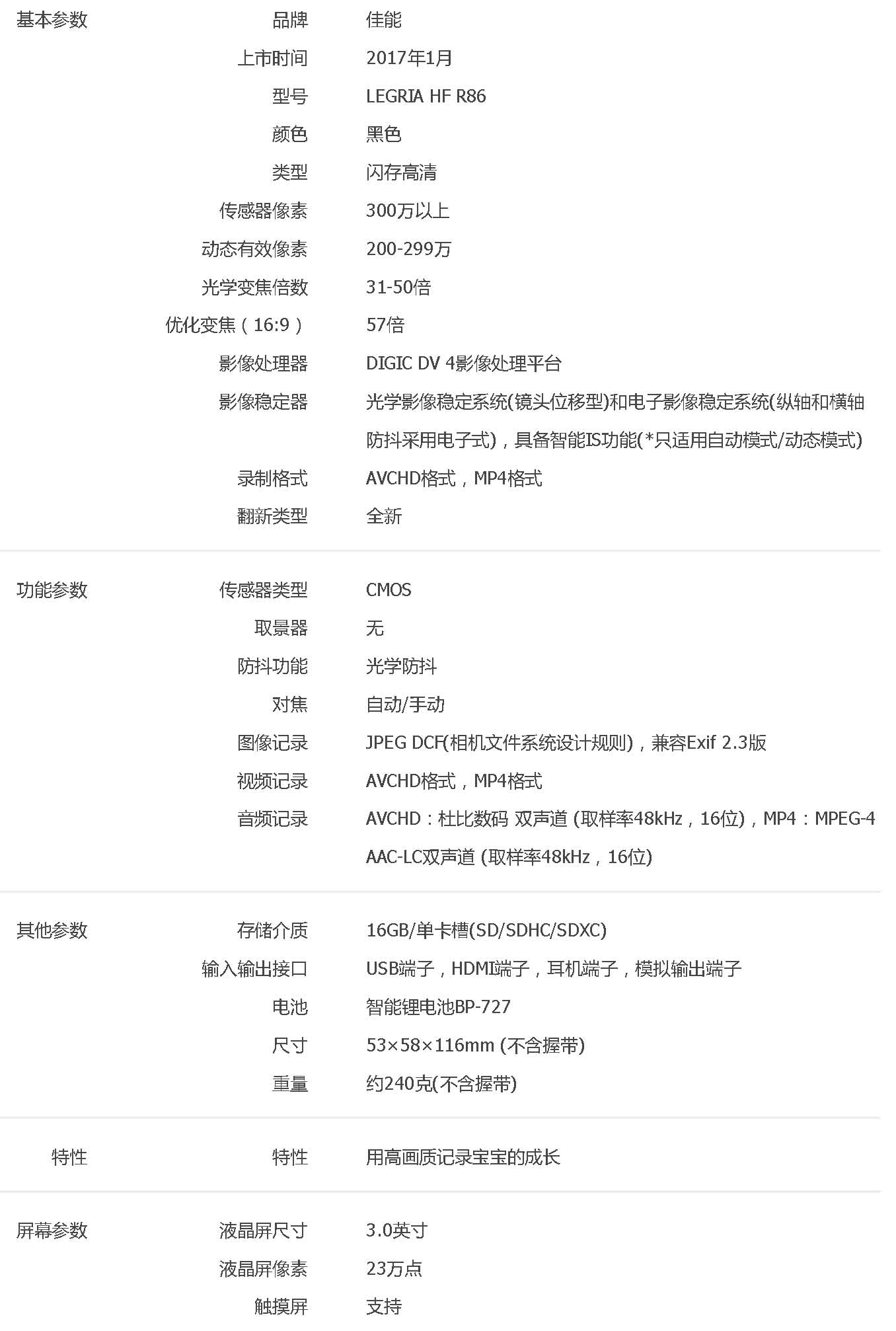 • 型號:佳能(canon)LEGRIA HF R86