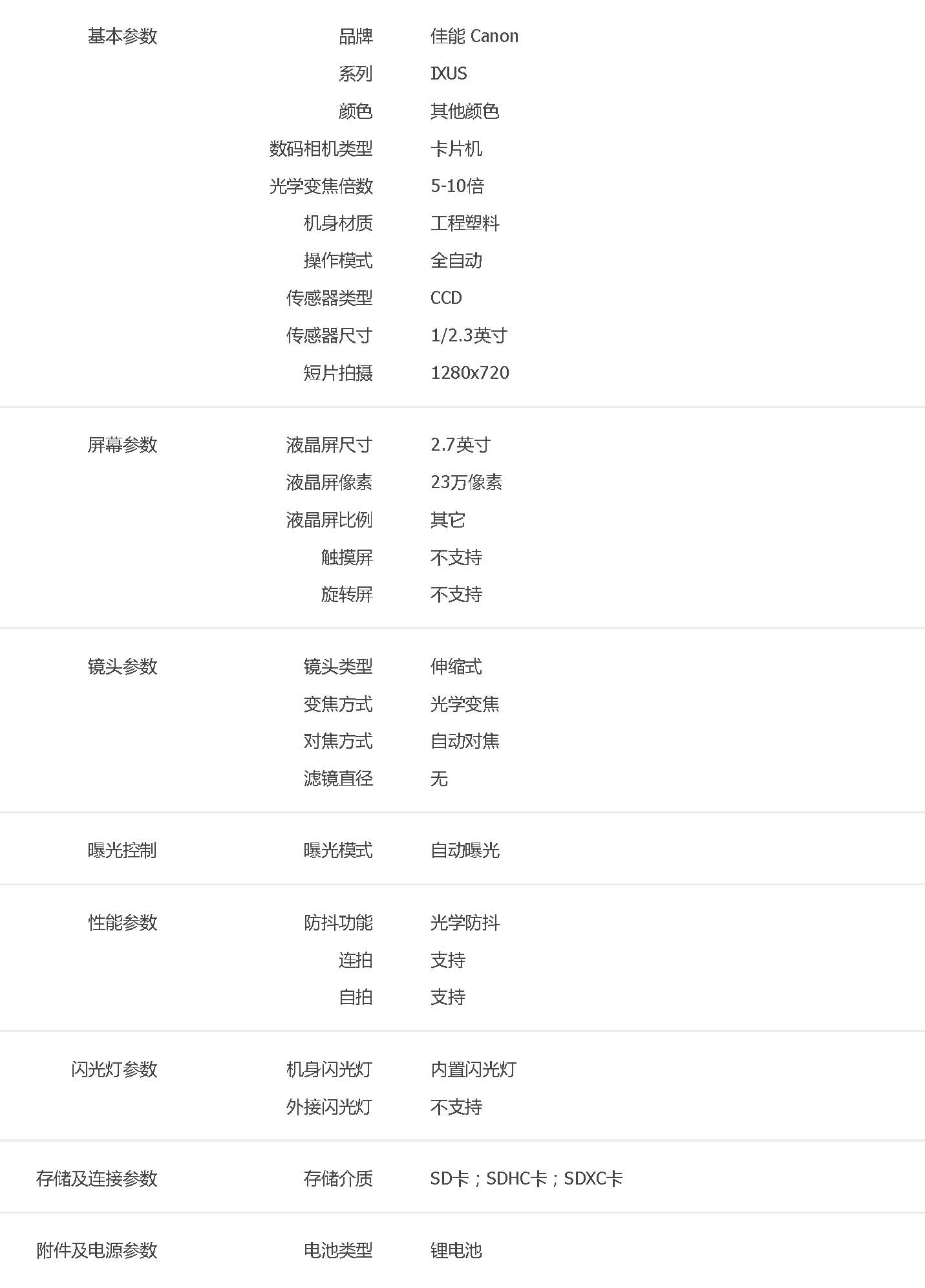 • 規(guī)格:IXUS 185數(shù)碼相機(jī)
