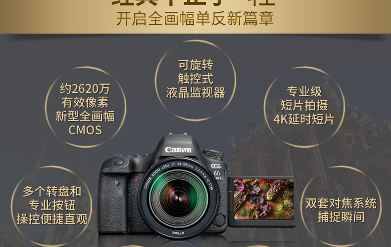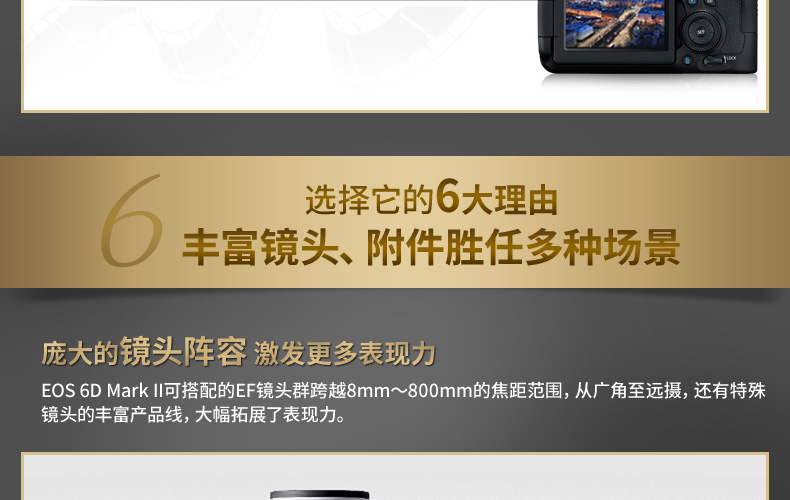 • 商品名稱:佳能(Canon)EOS 6D Mark II 套機(jī)(EF 24-70mm f/4L IS USM) 全畫幅單反相機(jī)