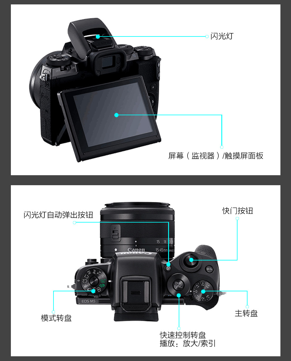 • 商品名稱:佳能(Canon)EOS M5 套機 ( EF-M 15-45mm f/3.5-6.3 IS STM ) 微單相機