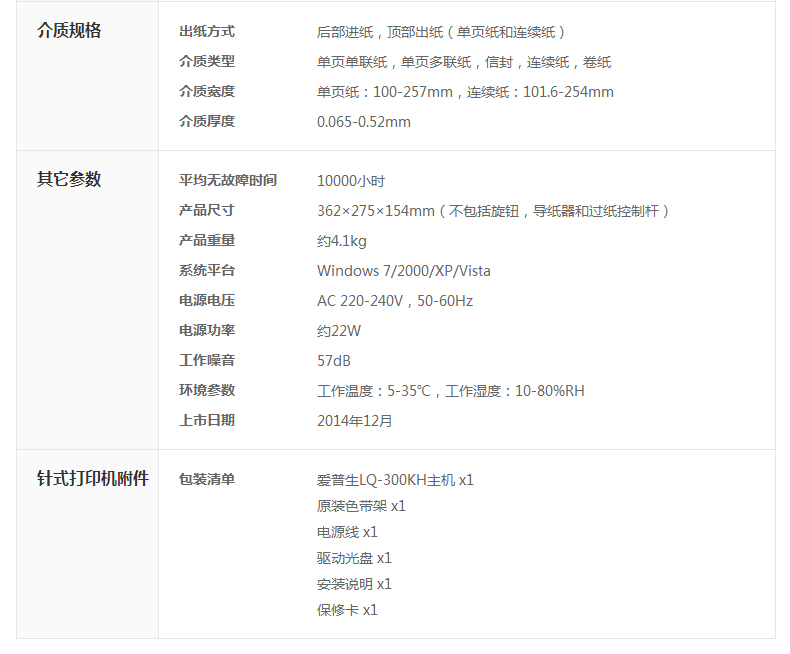• 商品名稱:愛(ài)普生(EPSON)針式打印機(jī)LQ-300KH