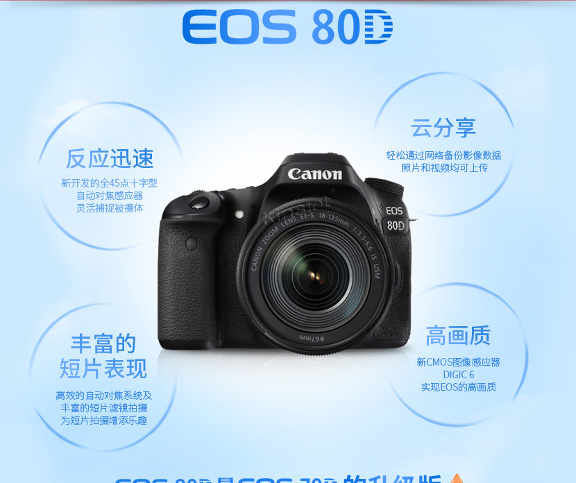 • 商品名稱:佳能(Canon)EOS 80D 單機(jī) 單反相機(jī)