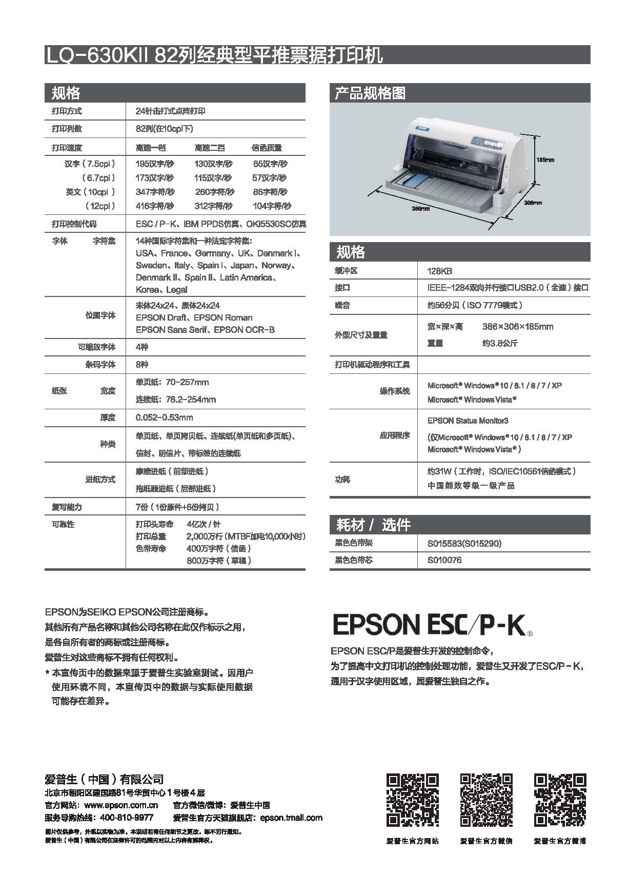 • 商品名稱:愛普生(EPSON)LQ-630KII 針式打印機 原廠保修3年
