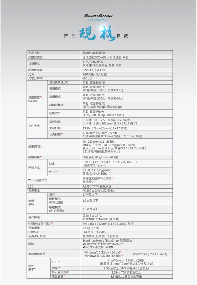 • 商品名稱:富士通(Fujitsu)掃描儀/ix1500 A4雙面自動饋紙 自動雙面