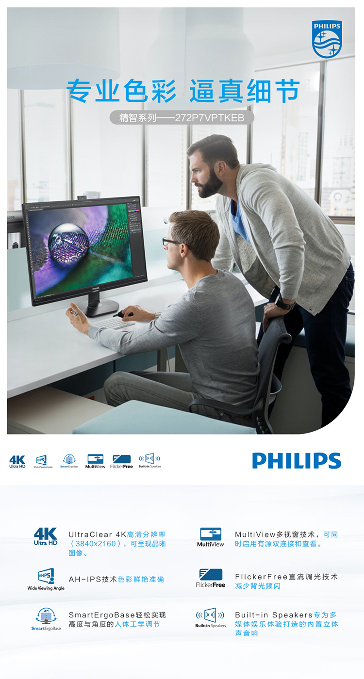 - 商品名稱:飛利浦(Philips)272P7VPTKEB液晶顯示器27寸VGA/HDMI/DP*2/USB3.0*3接口分辨率3840×2160